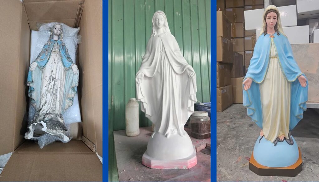 Việc lựa chọn sửa chữa hay thay thế tượng Công giáo bằng composite không có một đáp án chung cho mọi trường hợp. Quyết định này cần dựa trên mức độ hư hỏng, vị trí đặt tượng, chi phí sửa chữa so với giá trị sử dụng và mục đích thờ phụng.